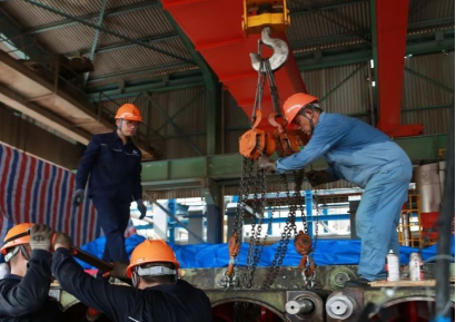 2021年9月25日上午8時18分,在浙江省諸暨市海亮有色智造園內(nèi),隨著施工單位——銅冠建安鋼構(gòu)公司起重人員一