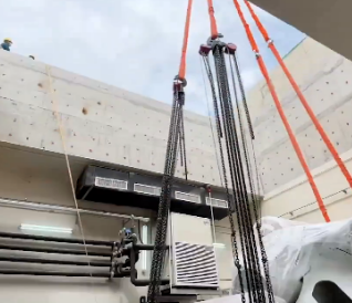 2022年9月8日,在華中科大附屬協(xié)和醫(yī)院金銀湖院區(qū),人們利用吊車和大噸位手拉葫蘆成功將45噸重的質(zhì)子放射治療系